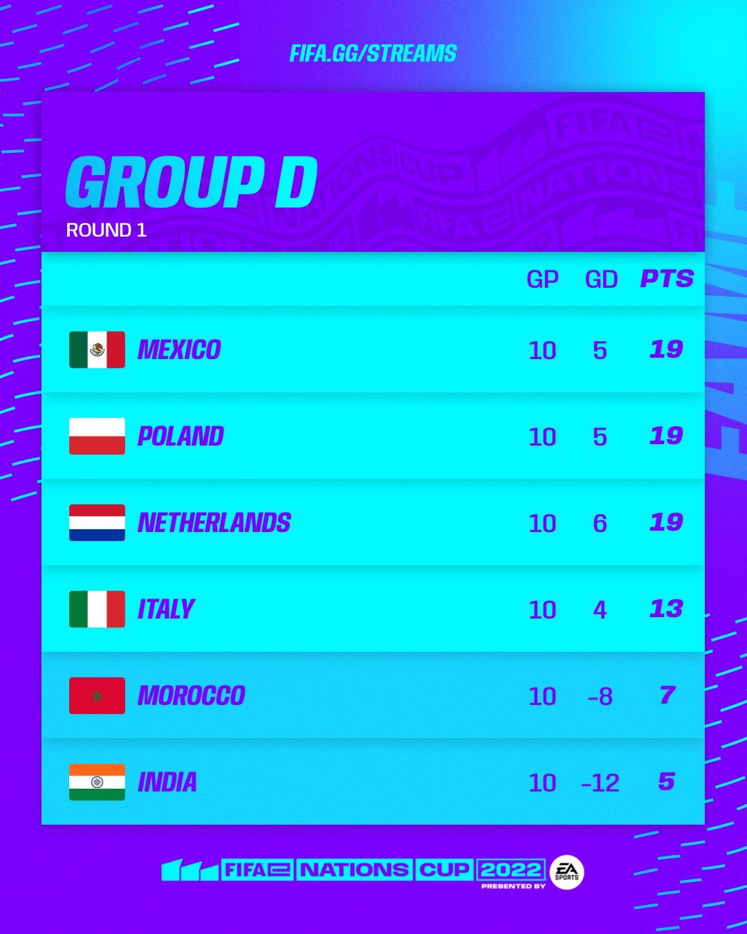 Classement final de l’équipe nationale après sa participation à la FIFAe Nations CUP