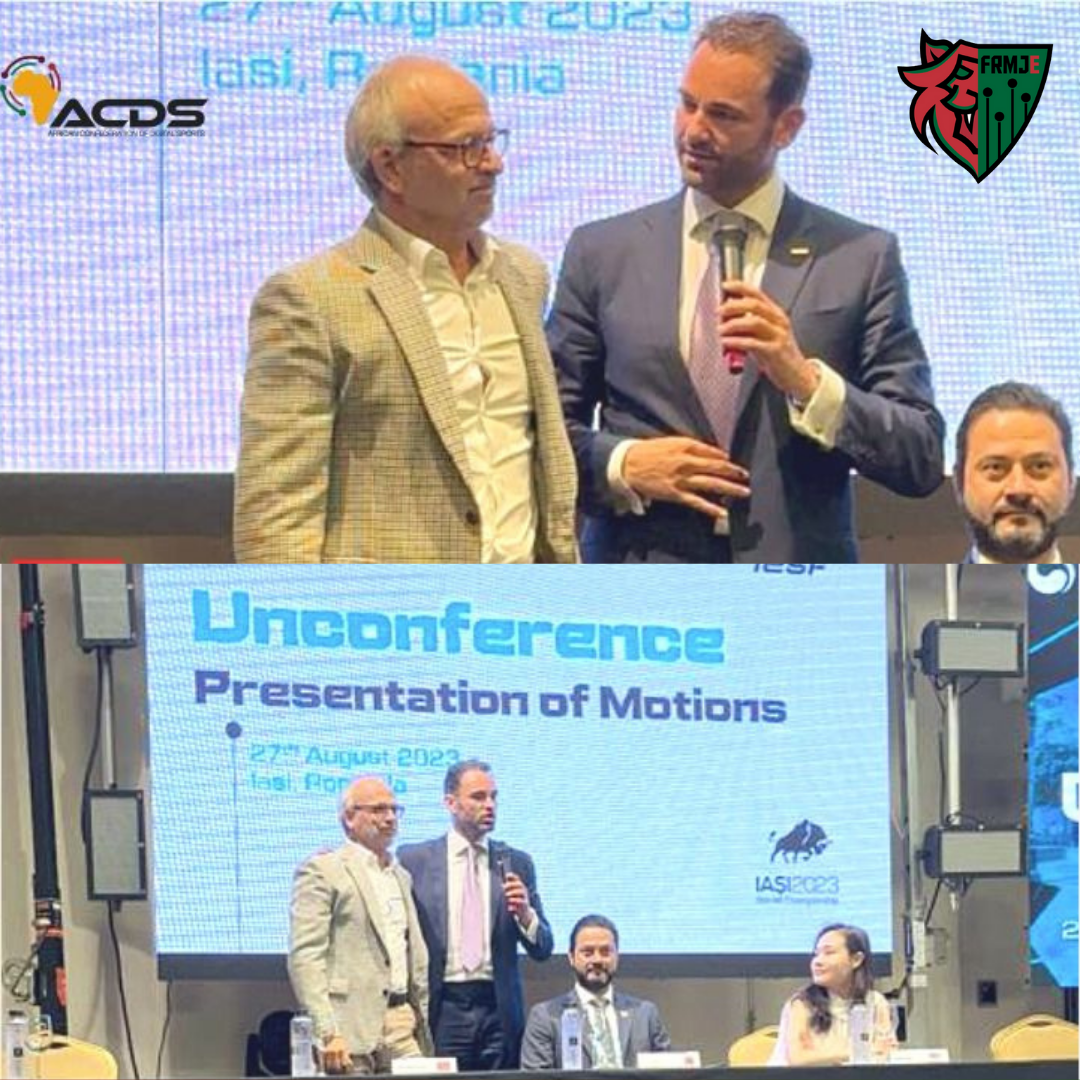 Après que le Maroc a été unanimement élu pour obtenir une adhésion complète à la Fédération Internationale des Sports Électroniques, M. Hicham El Khlifi, Président de la Confédération Africaine des Sports Numériques et de l’Université Royale Marocaine des Jeux Électroniques, a été désigné en tant que Vice-Président de la Fédération Internationale des Sports Électroniques.