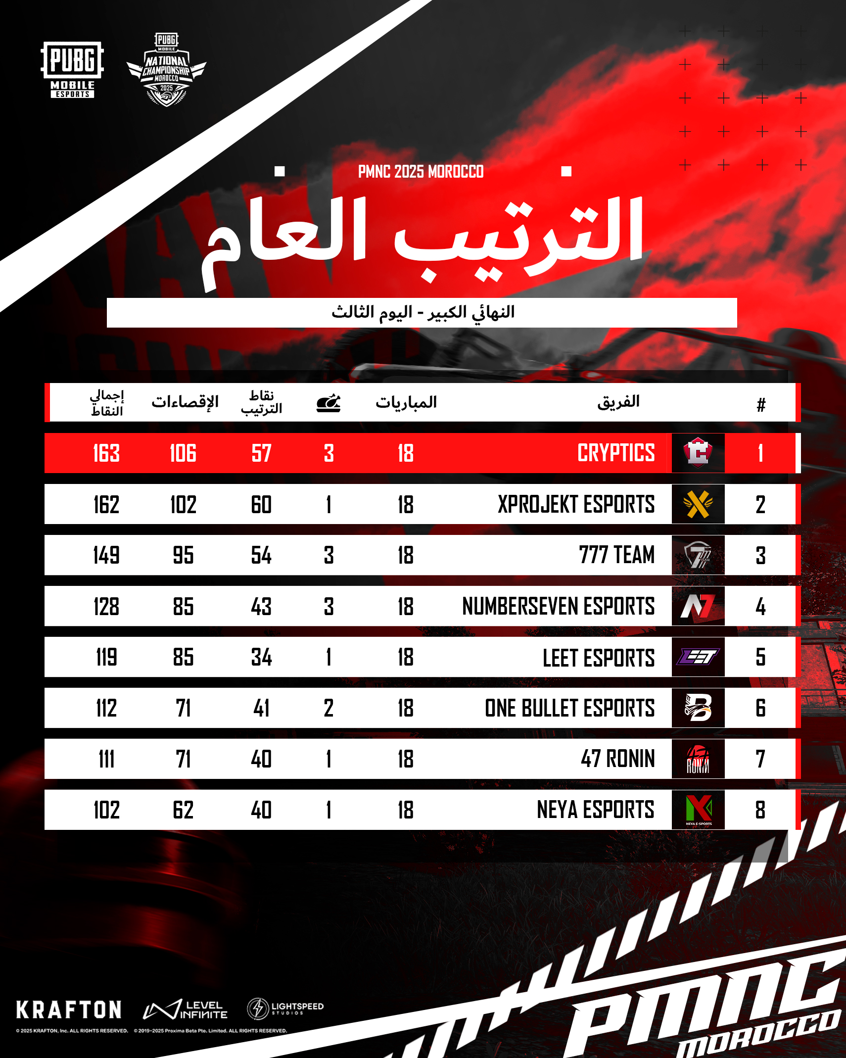 Après avoir livré des matchs impressionnants et démontré un niveau de jeu exceptionnel tout au long de cette compétition nationale, l’équipe Cryptics s’est imposée en décrochant le titre de champion du PMNC Maroc !