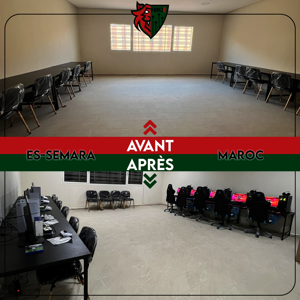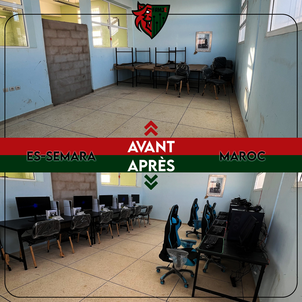 Récemment, trois nouvelles Maisons de Jeunes dans la ville d’eS-smara ont été équipées, portant le nombre total à 101 Maisons de Jeunes dotées des infrastructures nécessaires pour l’eSport.