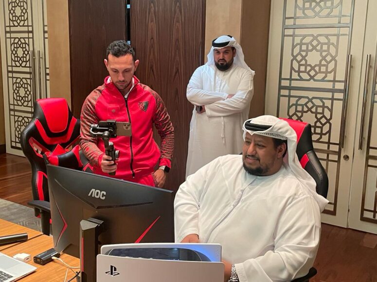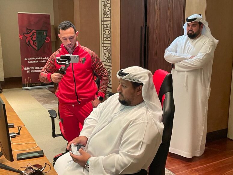 Visite du Comité Technique de la Fédération des Emirats des Sports Electroniques à l’équipe nationale marocaine lors de son séjour à Abu Dhabi dans les Émirats Arabes Unies.