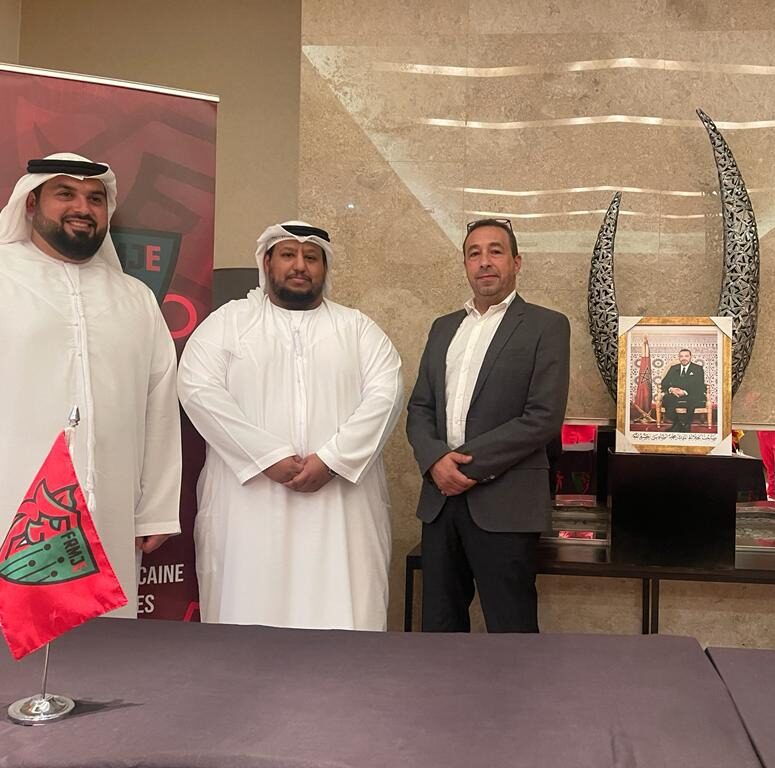 La Fédération Royale Marocaine des Jeux Electroniques exprime ses plus vifs remerciements et sa gratitude à M. Mahmoud Al-Karbi et M. Ibrahim Khoury, membres du Comité Technique de la Fédération des Emirats des Sports Electroniques, pour leur aimable visite qu’ils ont dédié à l’équipe nationale marocaine lors de son séjour à Abu Dhabi dans les Émirats Arabes Unies.